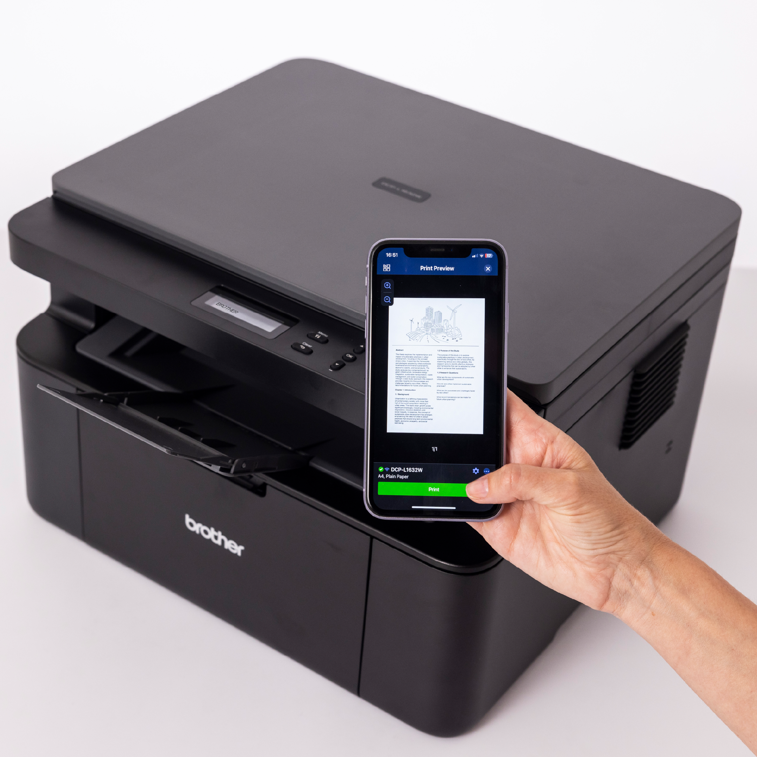 The ideal device for your home and small office. The compact DCP-L1632W is designed to fit eamlessly into your space with flexible connectivity options making it simple to set up and simple to use.