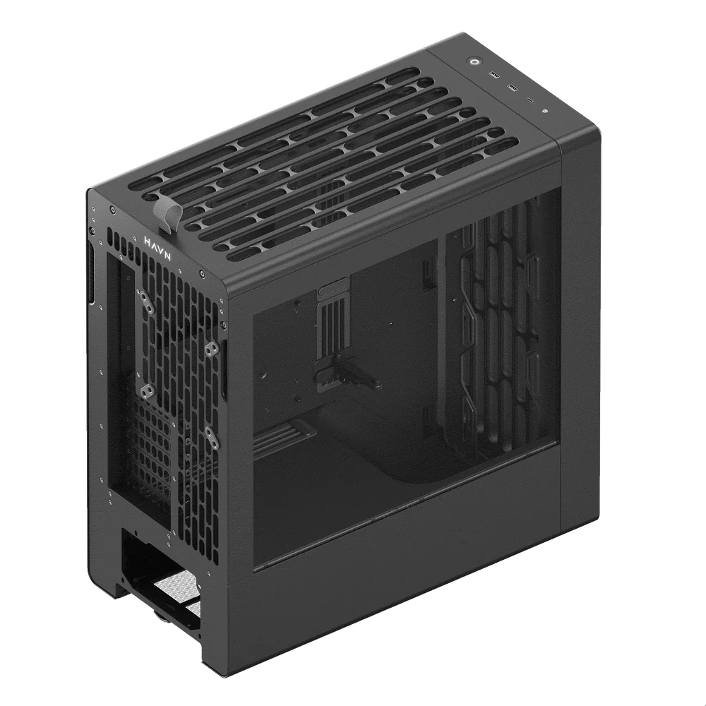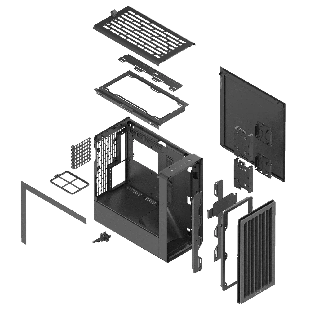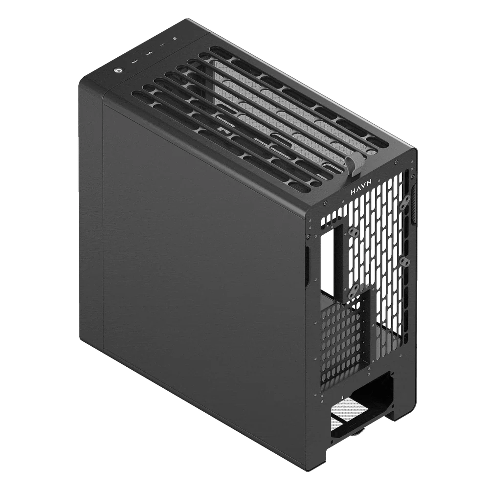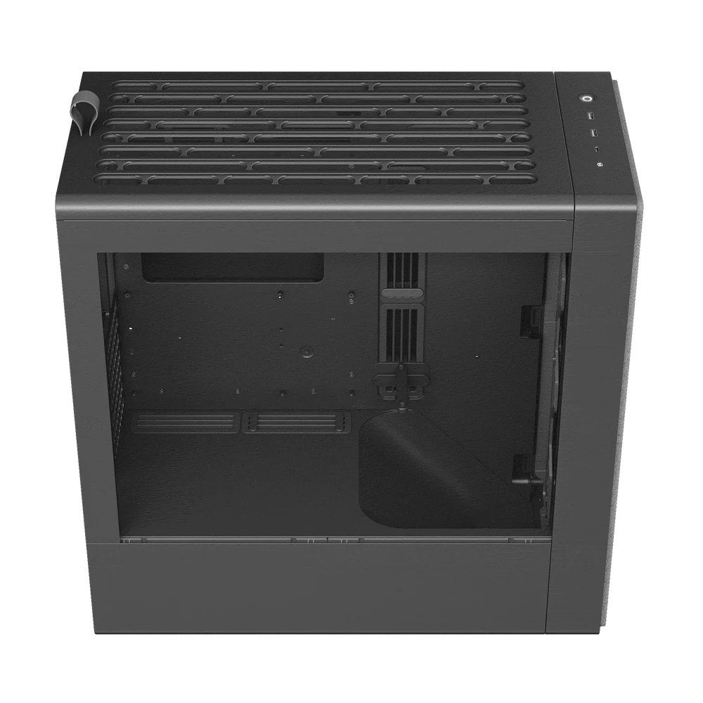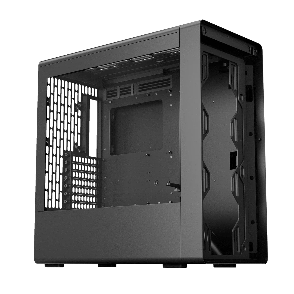 - ATX mid tower with GPU air guide ramp and support for 120 to 180 mm fans.