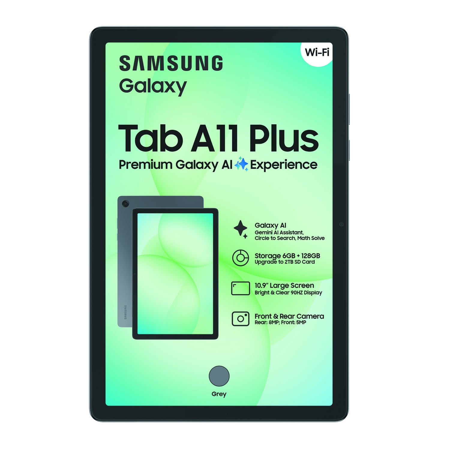 Inspired by the iconic Galaxy S Series, the new Galaxy Tab A11+ looks sleek and refined. Its streamlined silhouette and clean finish complete a premium design that stays true to the Galaxy identity.