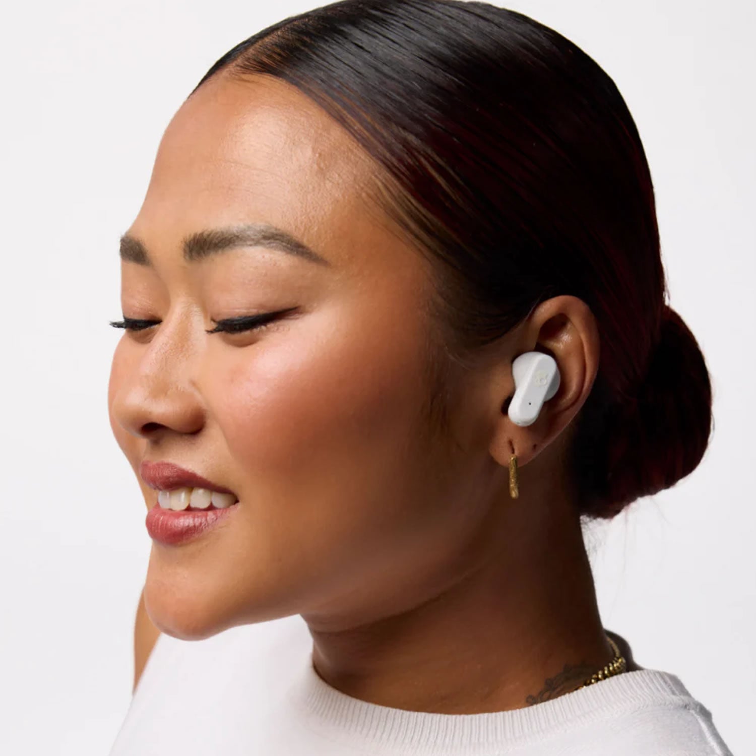 Clip it and rip it, Every hero needs a sidekick. Dime Evo is yours. Clip it to your pants, jacket or backpack and you will never be without your music, movies or podcasts again. It is packing big sound, all the essential features and a look unlike anything else. Take it with you, bring big sound wherever you go. With a clip-anywhere case, IPX4 water-resistant rating, 36 hours of battery and Rapid Charge, Dime Evo is down for naything, anytime. Taket it easy, Google Fast Pair for Android and Auto Connect make pairing simple and straight forward. Multipoint pairing and a simple button press on either bud gives you full control of calls and media. Take it personal, Use the Skullcandy App to personalize Dime Evo, Choose a preset EQ or customize your own. You can even adjust Stay-Aware mode to tune into your surroundings as much as or as little as you want.
