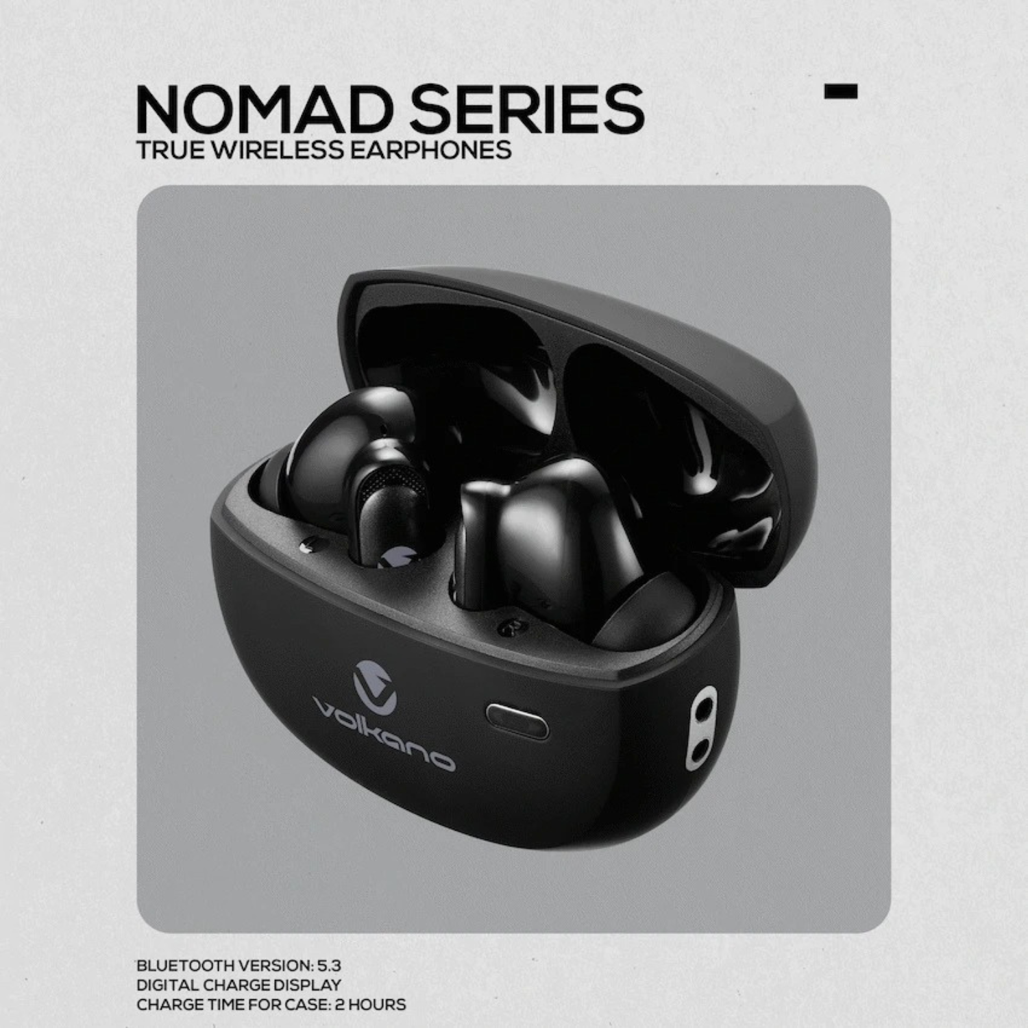 Block out the noise and focus on pure sound with the VolkanoX Nomad Active Noise Cancelling True Wireless Bluetooth Earphones. Designed for commuters, travellers, and music lovers, these wireless earbuds deliver an immersive listening experience with -25dB noise reduction for crystal-clear sound anywhere, anytime. With up to 24 hours of combined playtime from the charging case, you can enjoy music, podcasts, or calls all day. Switch ANC on to cut out distractions, or keep it off to extend your battery life. The 13mm drivers deliver rich audio and powerful bass, while Bluetooth 5.3 ensures stable, fast connections for a seamless wireless experience. Lightweight, pocket-friendly, and recharged via USB-C, the Nomad Series earphones also feature voice assistant support (Siri) and a comfortable fit with spare ear tips included—perfect for life on the go. siri Active Noise Cancelling Up to 24 hours playtime ENC DB noise reduction: -25dB