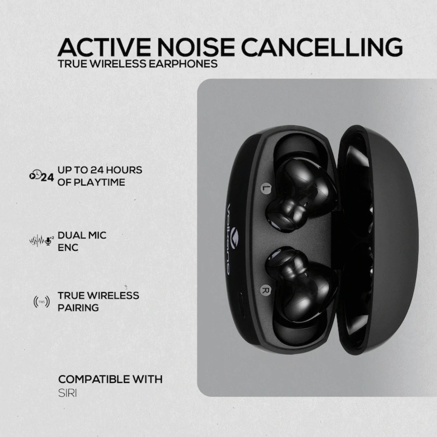 Volkano Nomad Active Noise-Cancelling True Wireless Earphones – Black