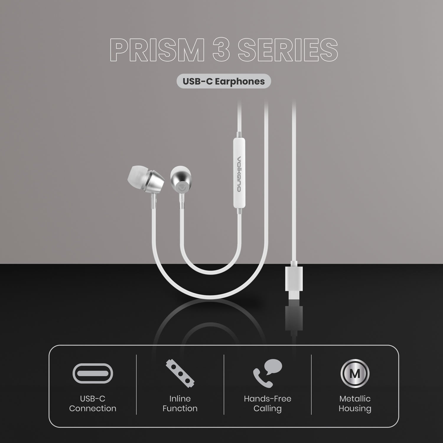 Volkano VK-1019-BK Prism Series 3.0 Type-C Earphones - White