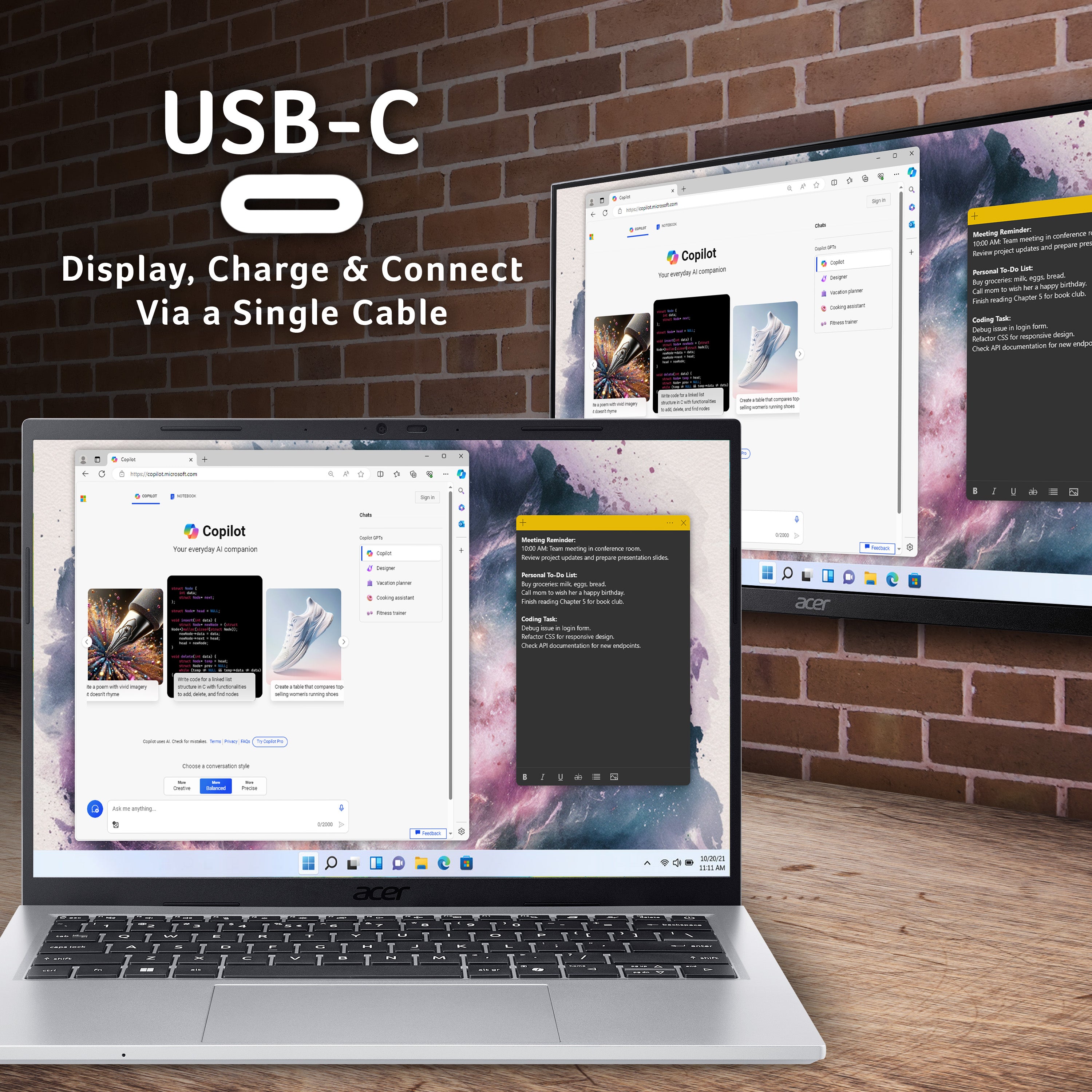 Experience seamless productivity with the sleek Acer Aspire Go 14. Powered by an Intel® Core™ 5 120U processor and 8GB of DDR4 RAM and 512GB SSD, this laptop delivers smooth multitasking and fast performance. Enjoy vibrant visuals on the 14" WUXGA perfect for work or entertainment. Store all your essentials on the speedy 512GB SSD and stay connected with WiFi 6 and Bluetooth. With a lightweight silver design, HDMI and USB 3.0 ports. This laptop is your ideal companion for work and play on the go.