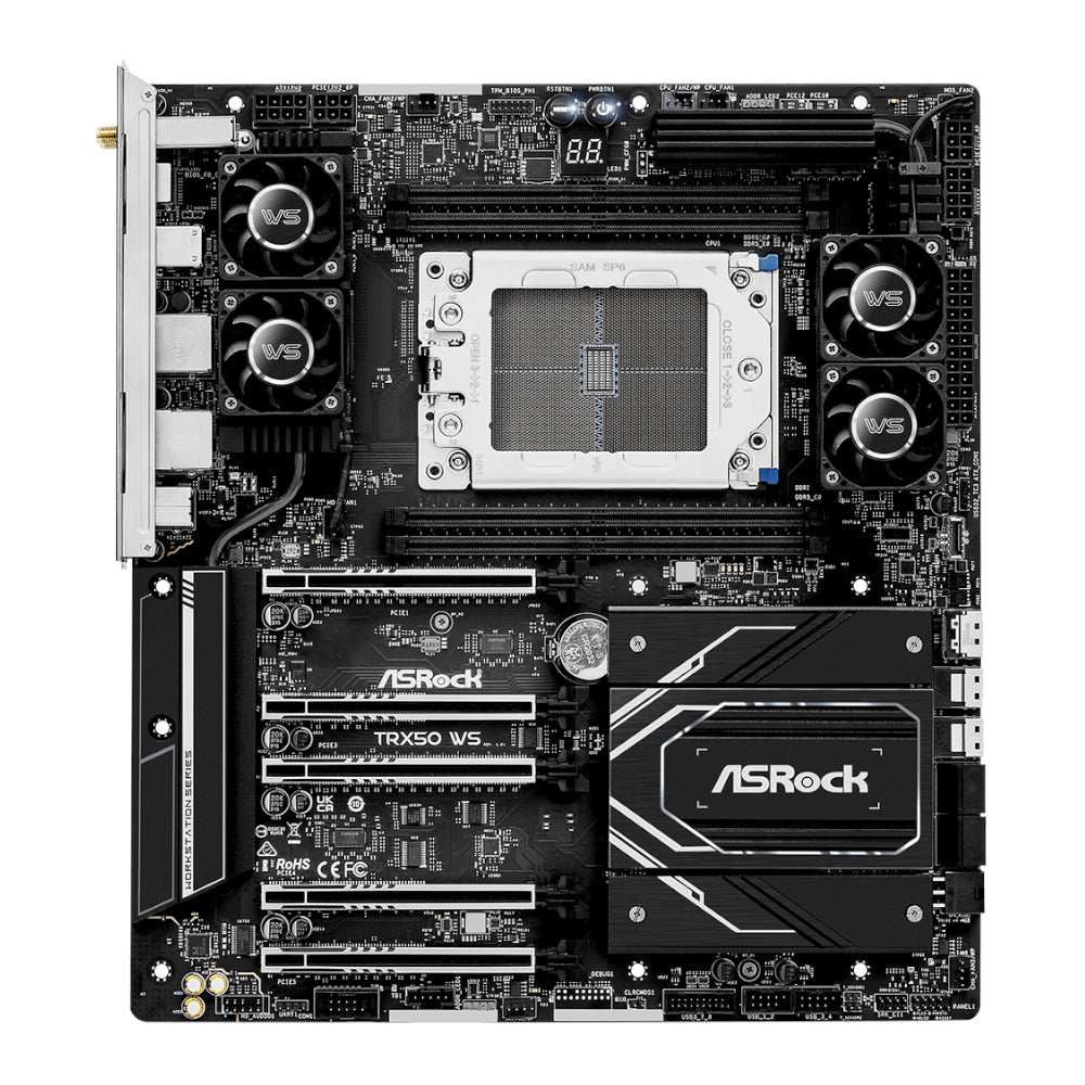 The ASRock AMD TRX50 WS AM5 EATX Gaming Motherboard is a high-performance, workstation-class motherboard engineered for intensive computing environments, providing powerful manageability and reliability. Built with a server-grade, low-loss PCB, this motherboard enhances signal integrity and supports PCIe 5.0 for both graphics cards and M.2 SSDs, unlocking extreme performance potential. Designed for demanding applications like deep learning, rendering, and simulation, the TRX50 WS is compatible with AMD Ryzen™ Threadripper™ PRO 7000 and AMD Ryzen™ Threadripper™ 7000 Series processors, bringing elite computing capabilities to professional setups. Its impressive 18+3+3 power phase design and 110A SPS for VCore ensure efficient and stable power delivery to support top-tier performance.