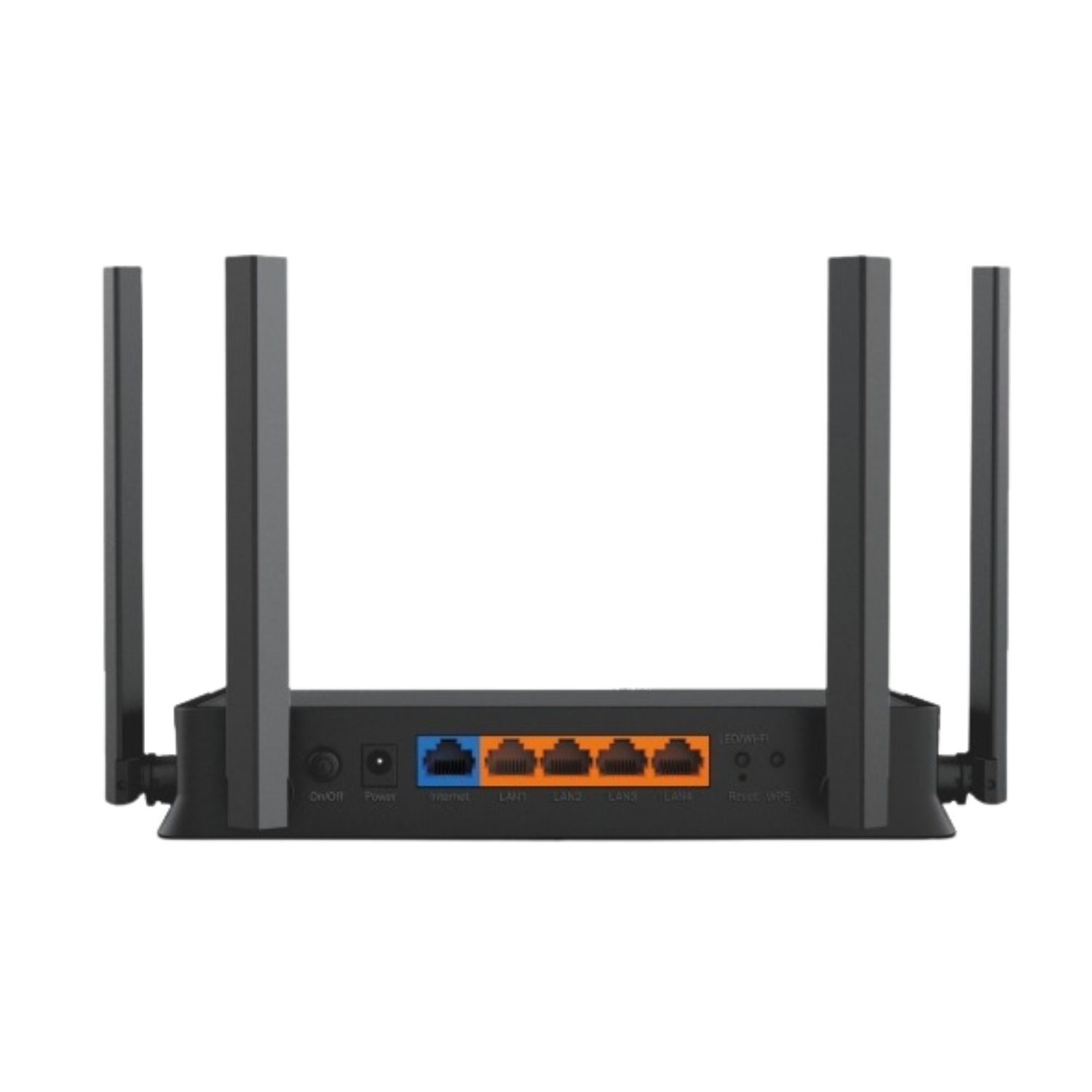 SPEC: 4× external Antennas, 2.0 GHz Quad-Core CPU, 1x 1Gbps WAN port + 4x1 Gbps LAN ports, MLO, 4096-QAM, OFDMA, HE160 on 5GHz