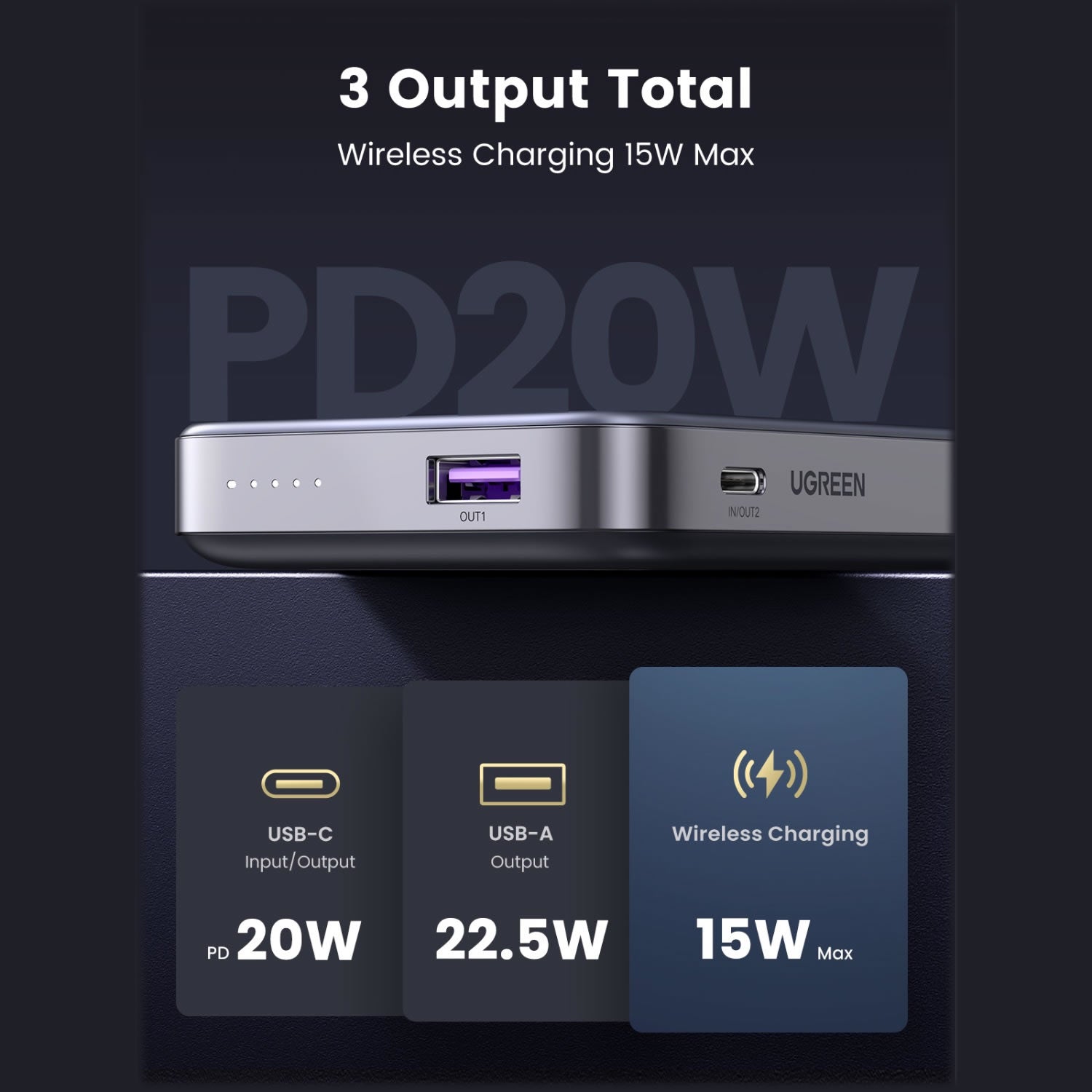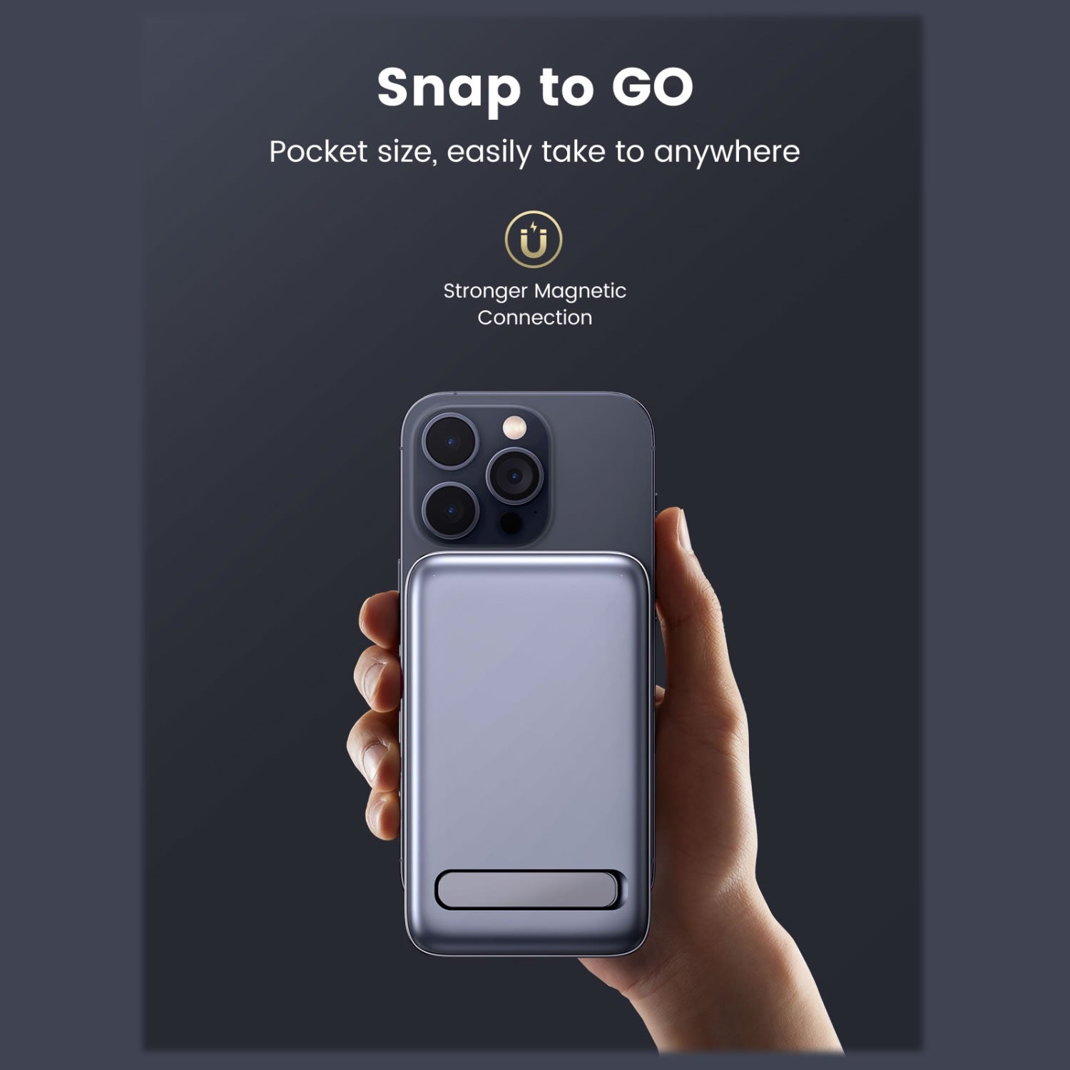 UGREEN 10000mAh Magnetic Wireless Power Bank PD20W With Kickstand - Grey