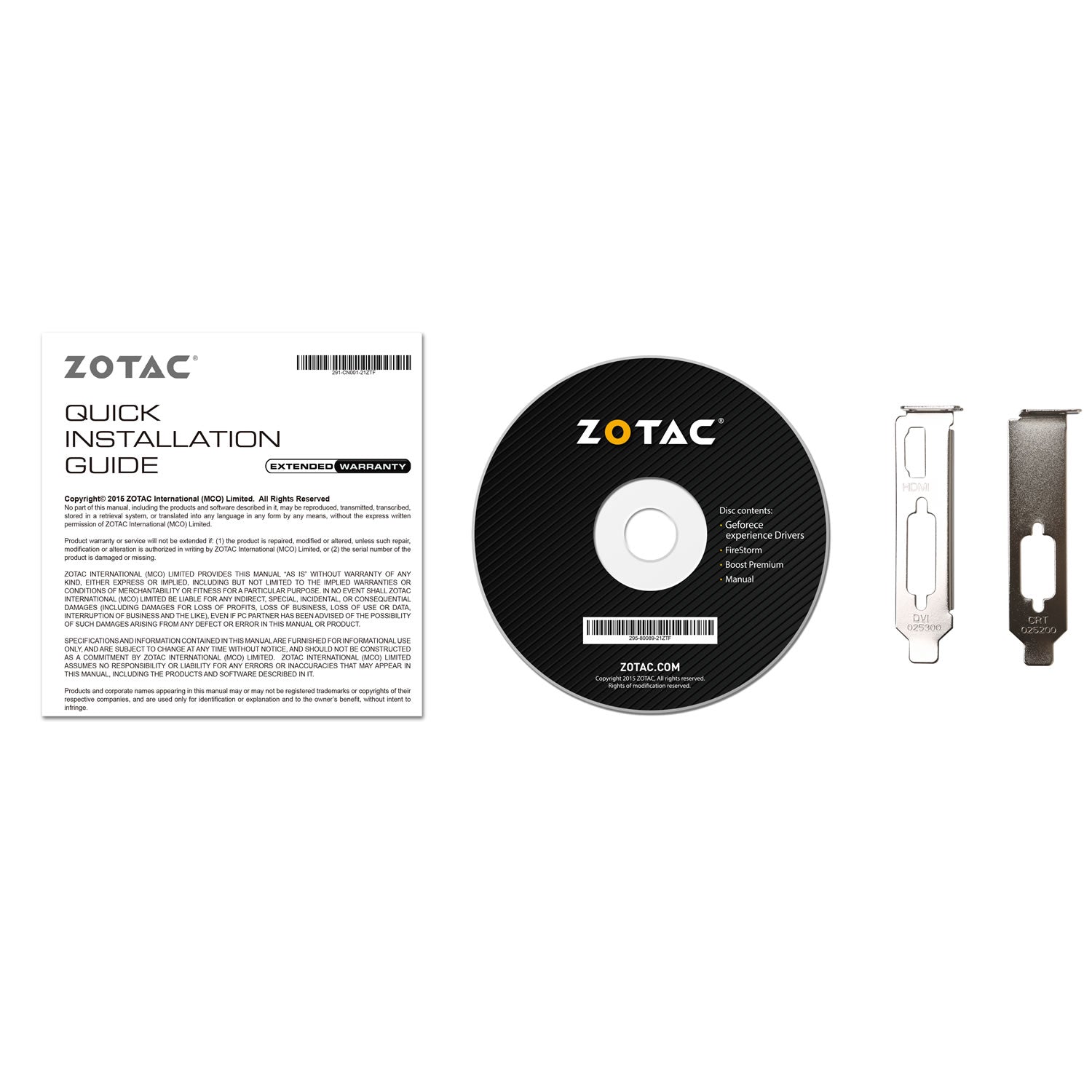 Low profile bracket [HDMI + DVI], Low profile bracket [VGA], Driver Disk, User Manual