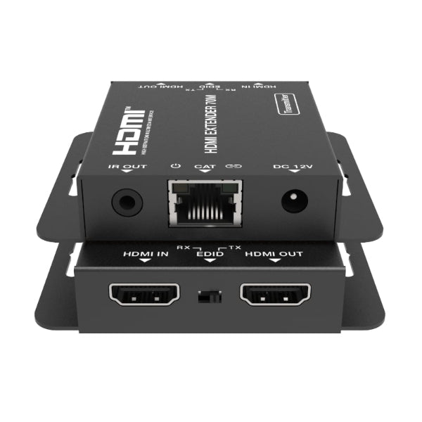 The HDCVT HDMI Extender with IR Control can extend your high definition video/audio signal and IR control signal up to 70m for 1080p resolution, and up to 40m for 4K30 resolution via a single CAT6 cable. The high-quality construction allows you to achieve zero delays, as well as uncompressed long-distance transmission between the transmitter and receiver. This extender with HDMI loop output can also be cascaded to the next extender, supporting resolutions of up to 4K @ 30Hz. For additional versatility, it supports the EDID copy function as well (you can choose local or remote EDID). To top it all off it also supports high-quality audio formats like PCM7.1, Dolby True HD, DTS HD. This product can be widely used in multimedia conference halls, TV teaching or with large-screen displays.