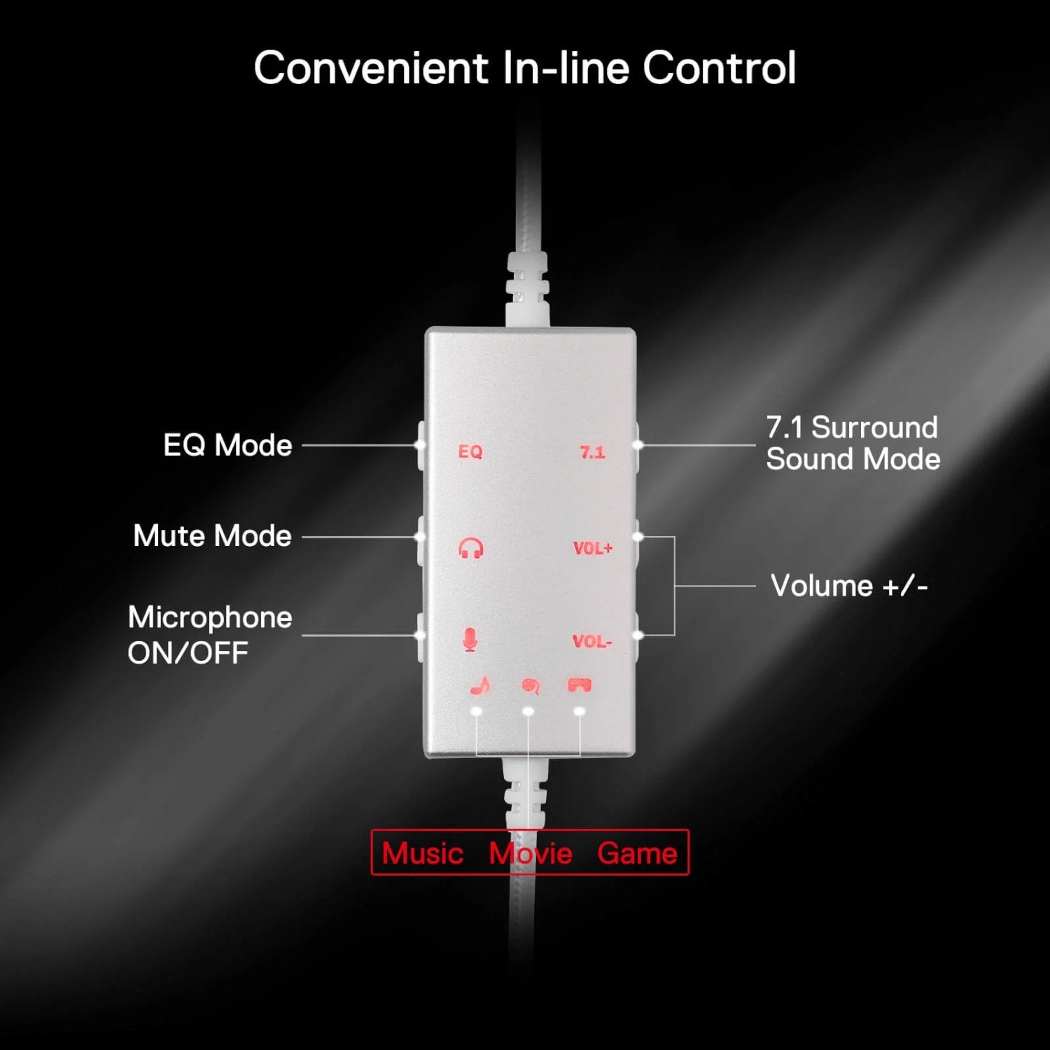 Experience a truly immersive gaming audio experience with the Redragon H376 AURORA 7.1 USB Gaming Headset. It features high-precision 40mm drivers that enhance your audio and bring every gunshot, footstep, and explosion to life. Enjoy crystal-clear conversations with teammates or friends thanks to the highly sensitive noise-cancelling microphone, eliminating background noise and distortion. Switch between three EQ modes effortlessly for different scenes, whether gaming, listening to music, or watching a movie. The volume button controller and mic quick mute with icons on this versatile USB headset make adjusting audio settings a breeze without losing focus.